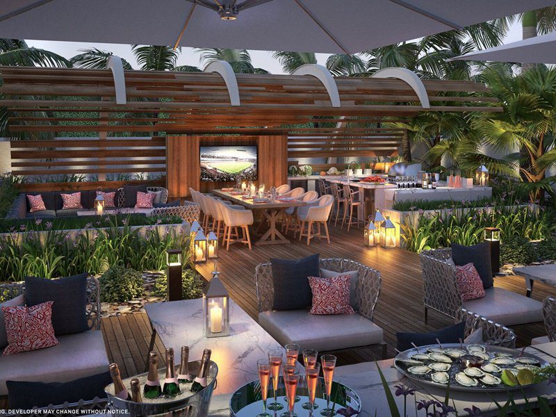- Tetőtér terasz, kilátással az óceánra, öbölre, és Miami sziluettjére